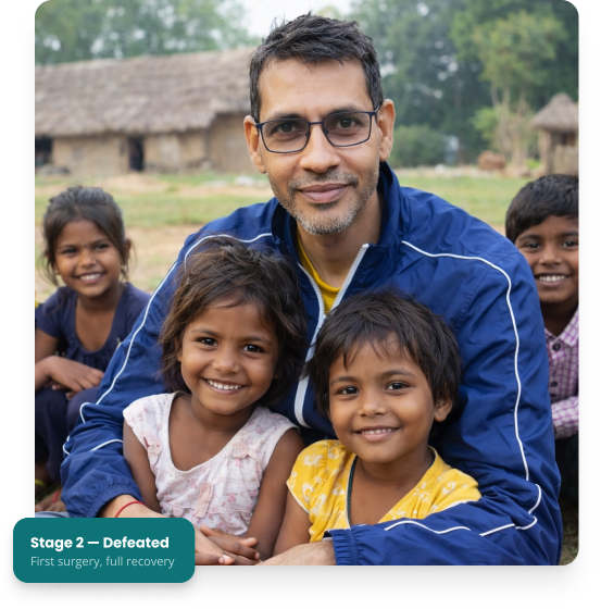 In 2008, Kuldeep was diagnosed with Stage 2 colon cancer. He underwent surgery to remove one-third of his colon, faced the fear head-on, and emerged victorious.